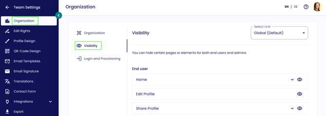 Team-Einstellungen → Organisation → Sichtbarkeit