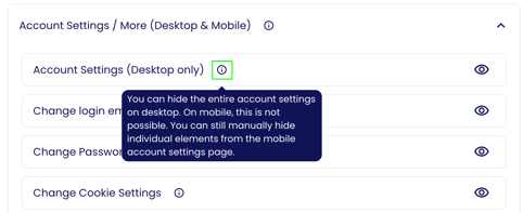 Du kannst hier bestimmte Seiten oder Elemente sowohl für Endbenutzer:innen, als auch für Administrator:innen ausblenden.