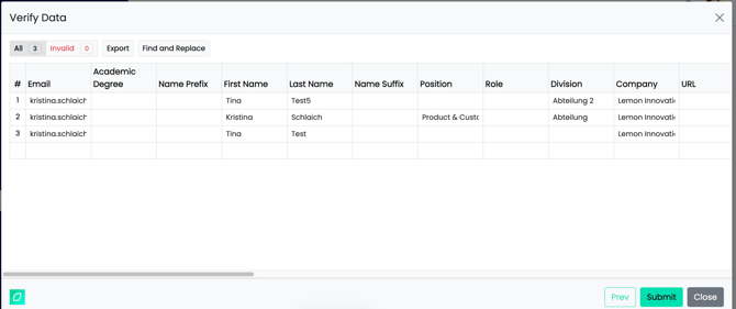 5. Überprüfe die Daten und Starte den Import.