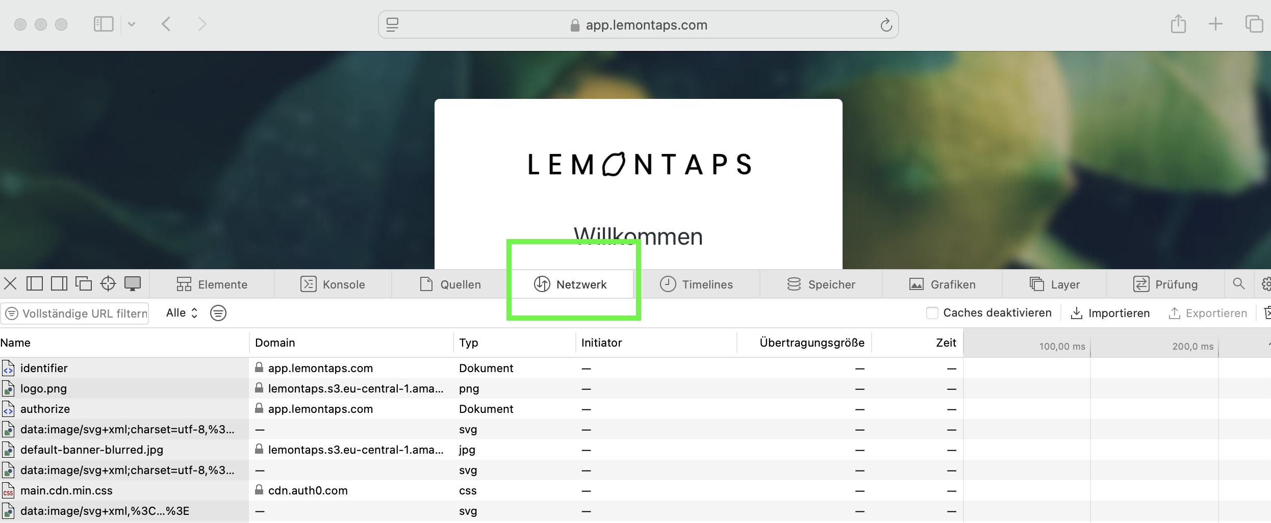 Klicke auf die Registerkarte „Netzwerk“ und lasse sie geöffnet.