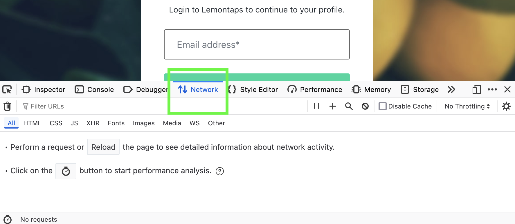 - Klicke auf die Registerkarte „Netzwerk“ und lasse sie geöffnet.