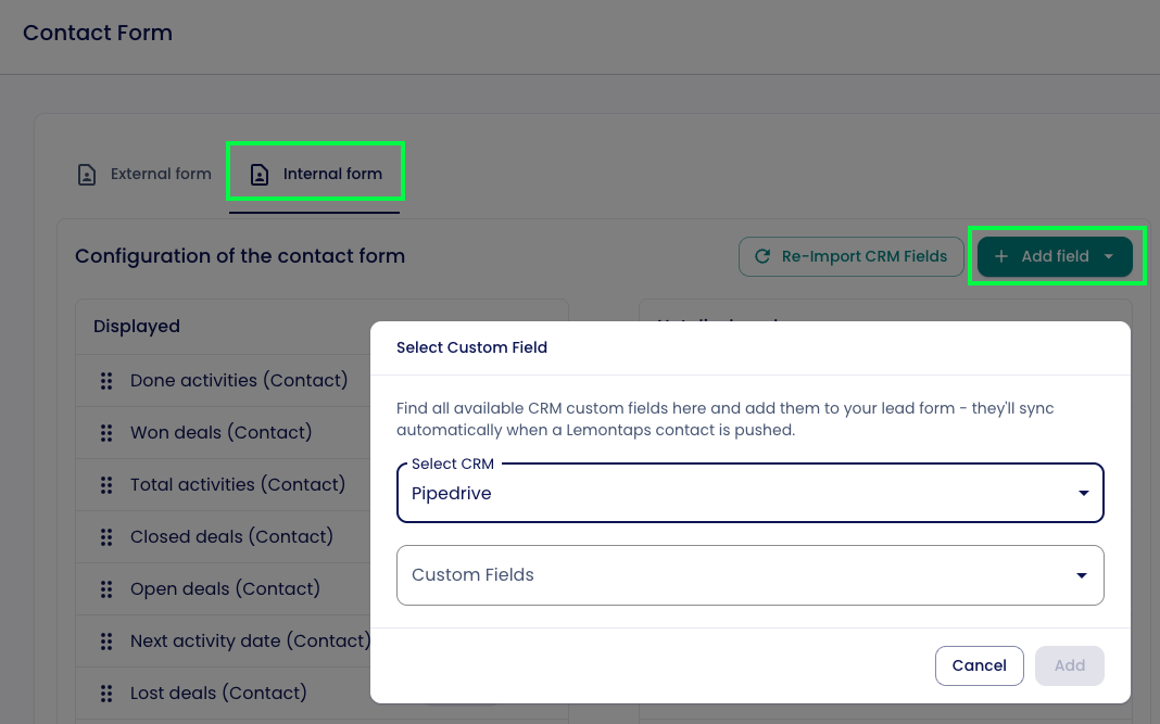 - Aktualisierungen von Kontakten in Lemontaps werden nicht automatisch im CRM aktualisiert.