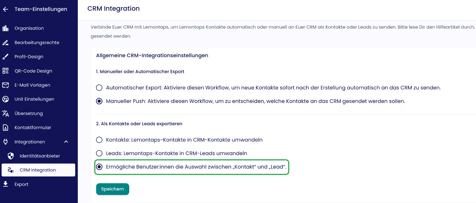 - Aktualisierungen von Kontakten in Lemontaps werden nicht automatisch im CRM aktualisiert.