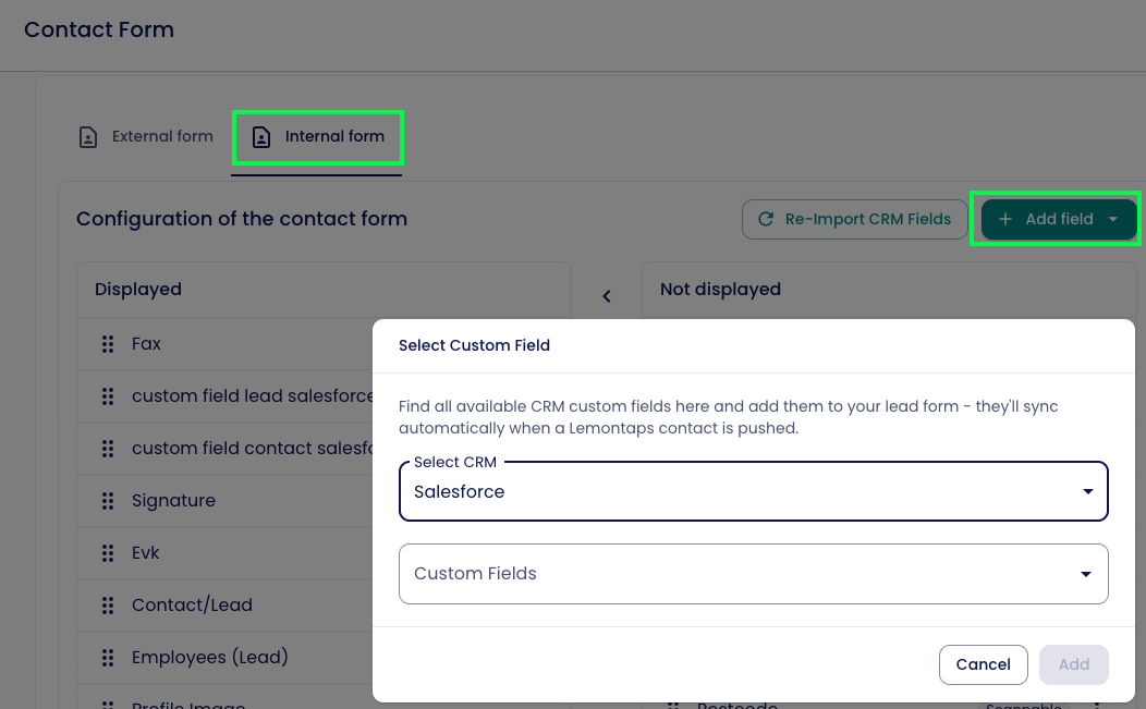 Hast du benutzerdefinierte Felder in Salesforce selbst angelegt, kannst du diese auch im Leadformular von Lemontaps sichtbar machen.