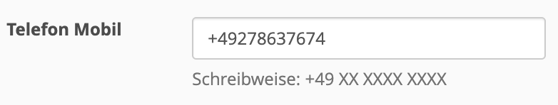 - Telefonnummern werden genau so angezeigt, wie sie in der digitalen Visitenkarte hinterlegt sind. Im Kontaktattribut-Konfigurator hier unter „Telefonnummer bearbeiten“ könnt ihr festlegen: