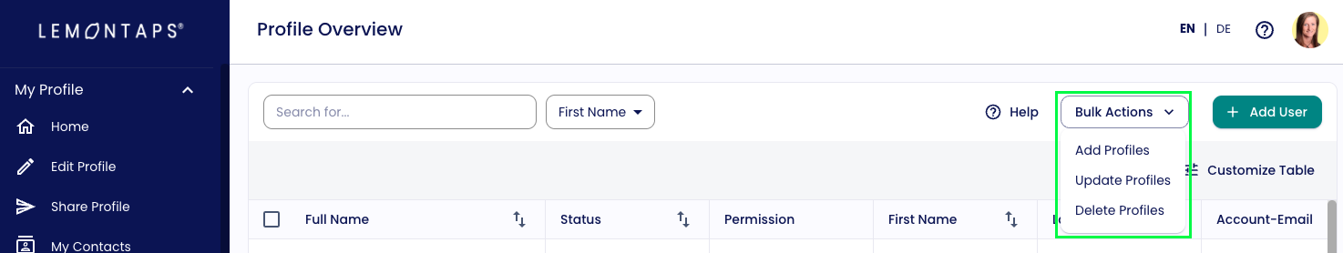 Wenn du mehrere Profile gleichzeitig bearbeiten möchtest, kannst du dafür die Funktion Profile aktualisieren innerhalb der Bulk-Aktionen nutzen.