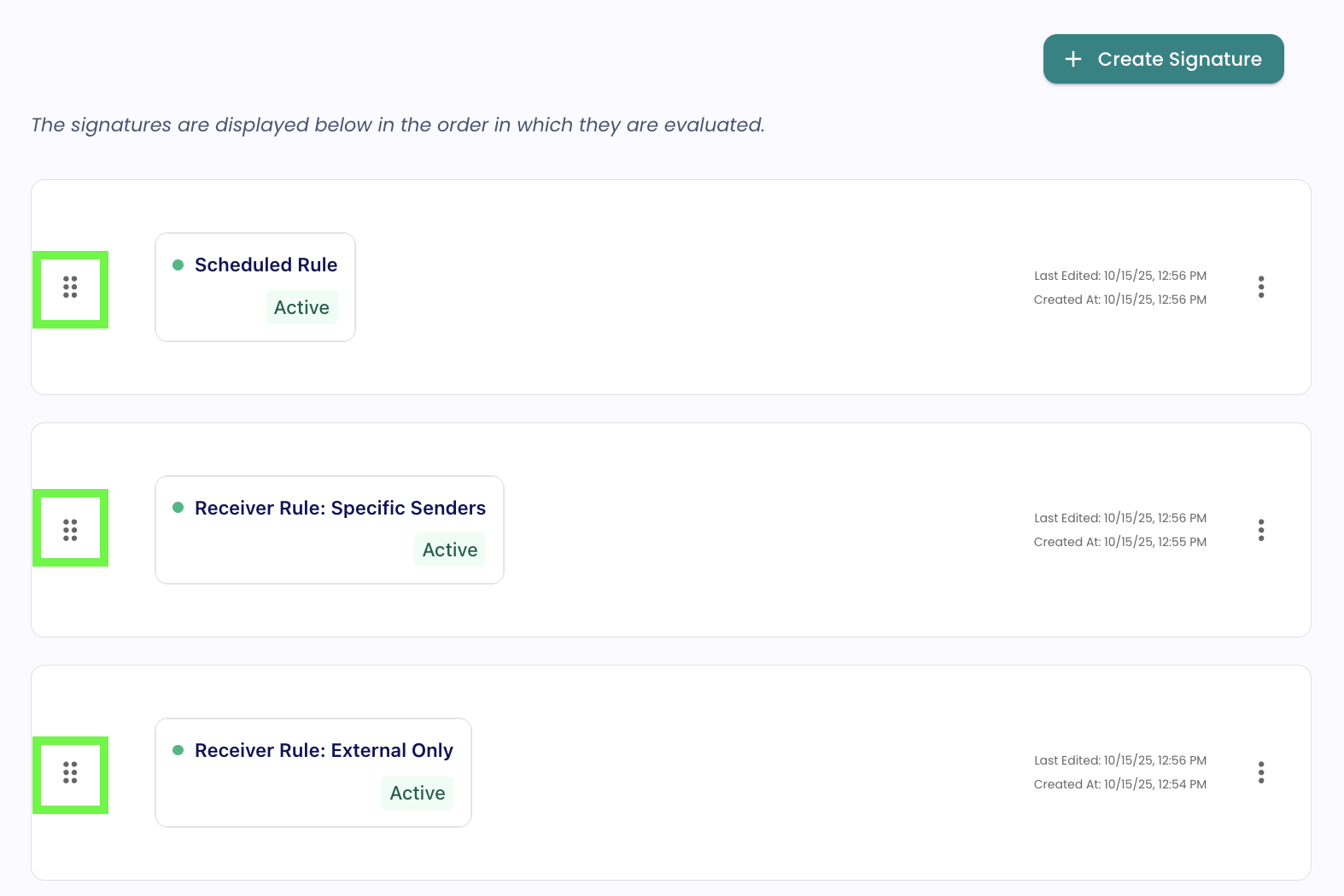 Go to the respective signature and then click on the “copy” button (bottom left).