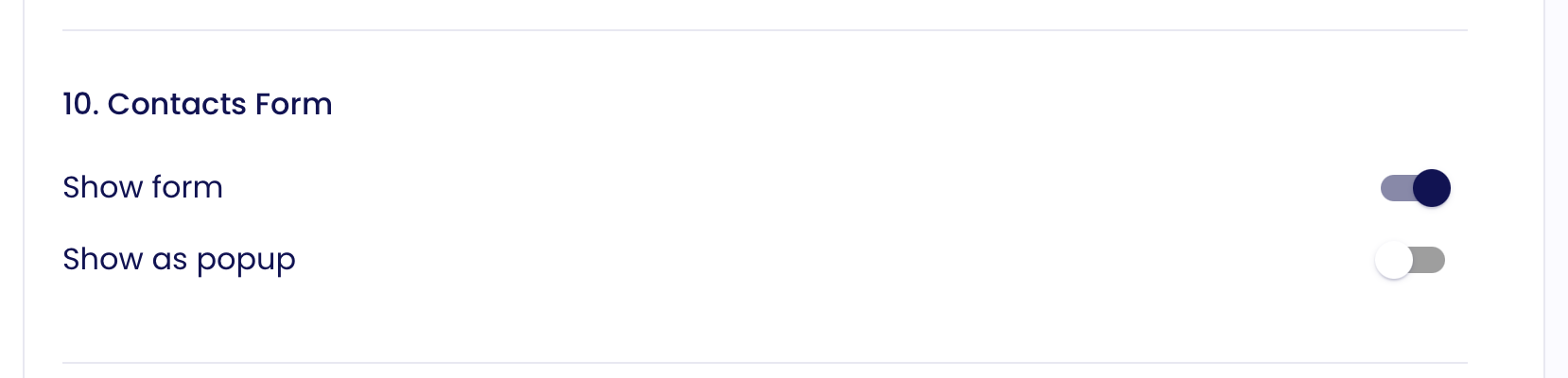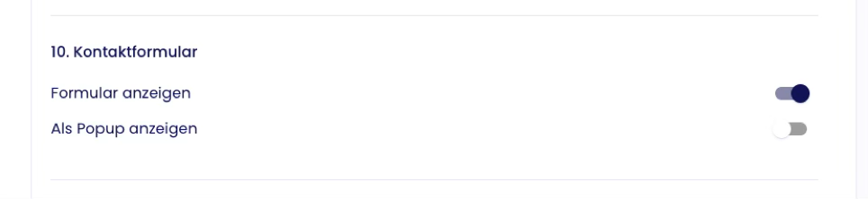 To hide the external contact form on your digital business card profile, go to your Profile Design Settings and disable the option under Section 10: Contact Form.