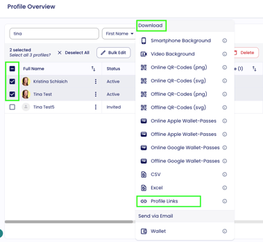 As an admin, you can export multiple profile links from your team: